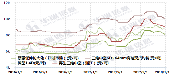 Dapat dilihat dari gambar bahwa setelah penurunan pada tahun 2014-2015, angka tersebut mencapai titik terendah pada paruh kedua tahun 2016 dan mencapai klimaks secara keseluruhan pada tahun 2017. Tahun 2017 benar-benar merupakan tahun terbaik untuk pengembangan daur ulang dalam lima tahun terakhir. di mana harga berongga daur ulang yang mahal melebihi harga asli yang murah, namun larangan limbah padat merusak keseimbangan bahan mentah, dan keuntungan dari serat kimia daur ulang secara bertahap berkurang, untungnya, mengandalkan penimbunan bahan baku awal dan pengisian ulang chip poliester berjalan lancar, ditambah dengan tahun 2018 yang merupakan kelanjutan dari klimaks sebelumnya dan periode jendela berikutnya sebelum perluasan seluruh lini poliester, masih dimungkinkan untuk memperoleh keuntungan dengan naik turunnya PTA dan poliester.